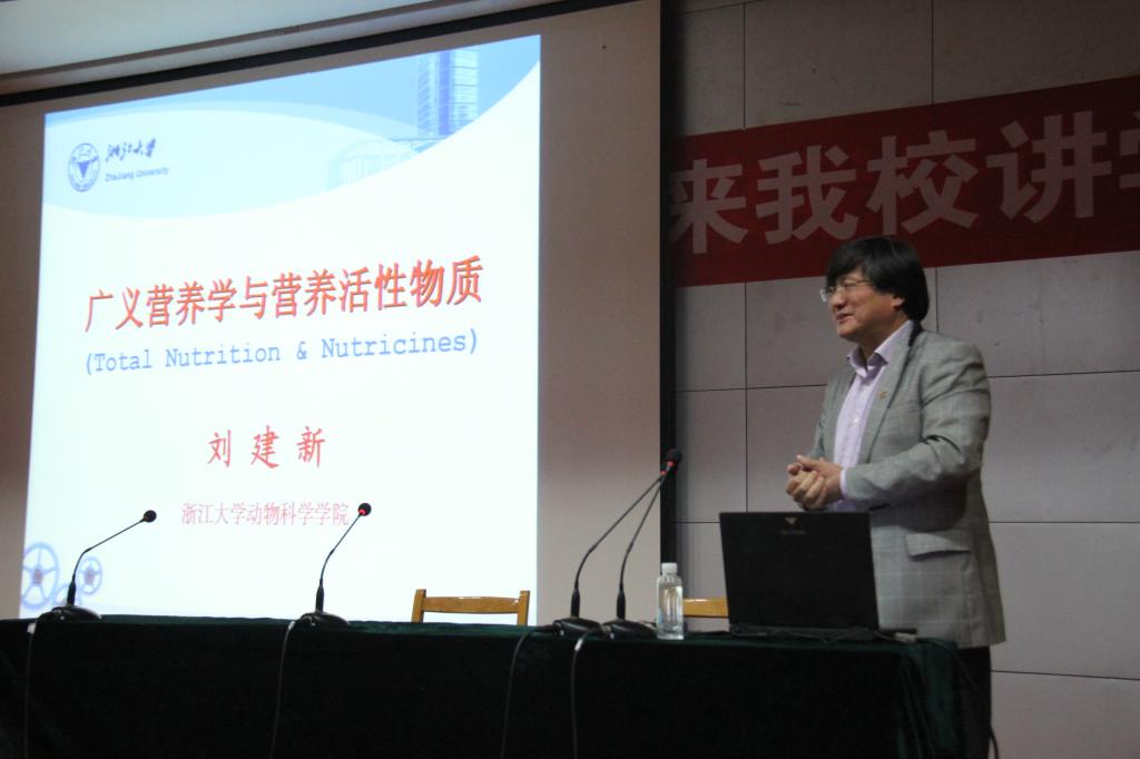 月15日下午,浙江大学农业生命环境学部副主任、求是特聘教授刘建新在图书馆报告厅作《广泛营养学与狭义营养学》的学术报告。生命科学系党总支书记张桂荣、主任朱道玉、副书记王慧丽,副主任邓振旭及生命科学系