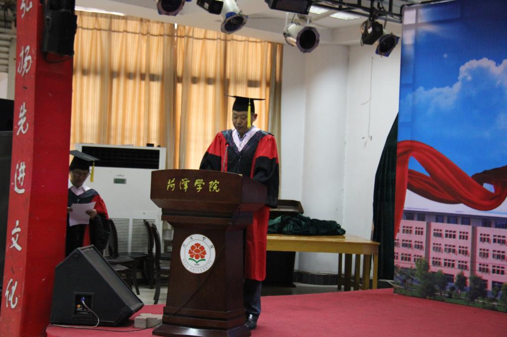典礼由党总支副书记王慧丽主持。典礼开始,全体起立奏唱《中华人民共和国国歌》,系副主任邓振旭宣读了bevictor伟德国际1946关于授予毕业生学士学位的决定。接下来各位领导和导师为毕业生颁发学位证书和毕业证书,毕业生们依次上台,脸上洋溢着喜悦与不舍的笑容。他们与导师握手,轻声道出他们的感谢,各位导师为他们拨正流苏并合合影留念,台下同学们不时的阵阵掌声是对他们永远的祝福。颁发证书结束后,优秀毕业生代表赵丽娜同学发言,她回顾了自己充实的四年大学生活,苦与乐的过程是她最珍惜的。随后毕业班班主任陈凌云作为教师代表发言,她希望同学们以后不管从事什么工作,都要实现自己的人生价值,一词一句表达了对同学们的眷恋之情。最后系主任朱道玉总结讲话,对2016届毕业生顺利完成学习表示祝贺,对大家提出殷切期望和要求,给予了真切的祝福。