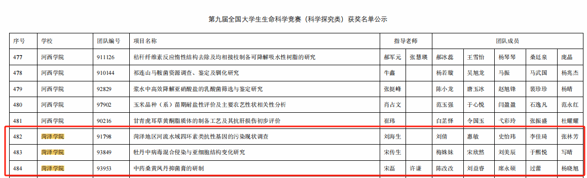 近日,第九届全国大学生生命科学竞赛(科学探究类)暨第十六届山东省大学生科技节—山东省大学生生物学大赛圆满落幕。我院学生表现优异共斩获26项奖项,其中3项国家级三等奖,1项省级二等奖,22项省级三等奖。同时,在第十六届山东省大学生科技节-大学生生物学大赛中,共取得省级二等奖2项,三等奖5项的好成绩。