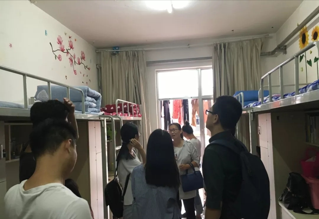 老师们进入宿舍后,首先对宿舍的卫生及安全做出详细的检查,希望同学们能做到干净整洁。一间间干净整洁的宿舍,显示了同学们阳光向上的生活态度与睿智从容的生活气息,对此老师们给予表扬并鼓励同学们继续保持。接着,老师对同学的日常生活进行了询问,事无巨细的关怀让远在他乡的同学感受到了如家般的温暖。最后,老师希望同学们能够继续保持整洁的宿舍环境,营造良好的校园生活氛围。