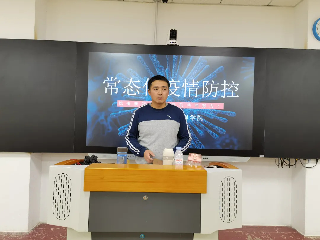 谭政老师表示,近期国内多地出现新冠疫情本土确诊病例和无症状感染者,省内疫情也再次反弹,要求全体学工干部要认识到当前疫情防控形势的严峻性、复杂性和长期性,要做好长期应对的准备。从思想根源上克服,要引起高度重视,克服侥幸心理。为有效控制和降低新冠疫情传播风险,谭老师强调:一是全体学生干部要带头认真学习学校相关规章制度,及时传达会议要求,时刻绷紧安全弦,疫情防控不松懈;二是学工队伍应联合各班负责人开展多种形式的健康宣传,普及防控知识,搞好学院各类场所环境卫生,尤其是各类生活、学习、工作场所(如教室、宿舍、图书馆、学生实验室、体育活动场所、餐厅、教师办公室、洗手间等)的通风,保持空气流畅,公共场所要佩戴好口罩;三是每日掌握教职员工及学生健康情况,发现异常情况要及时上报给辅导员班主任;四要严格执行请销假制度,非必要不外出,不要去人群密集的场所,禁止跨省出行,因特殊情况确需离校的要提交“往返时间、出行路线、交通方式、陪同人员”等情况,做到行程可追溯,并按防疫要求做好个人防护。