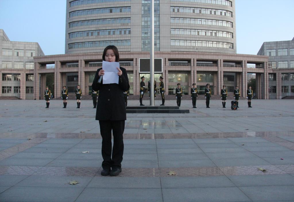 迎着朝阳,国旗护卫队的升旗手们护卫着鲜艳的五星红旗入场,他们着装整齐,步伐矫健。随后,伴随着《义勇军进行曲》的响起,大家集体行注目礼,庄严肃穆。冉冉升起的五星红旗,点燃了同学们强烈的爱国热情。