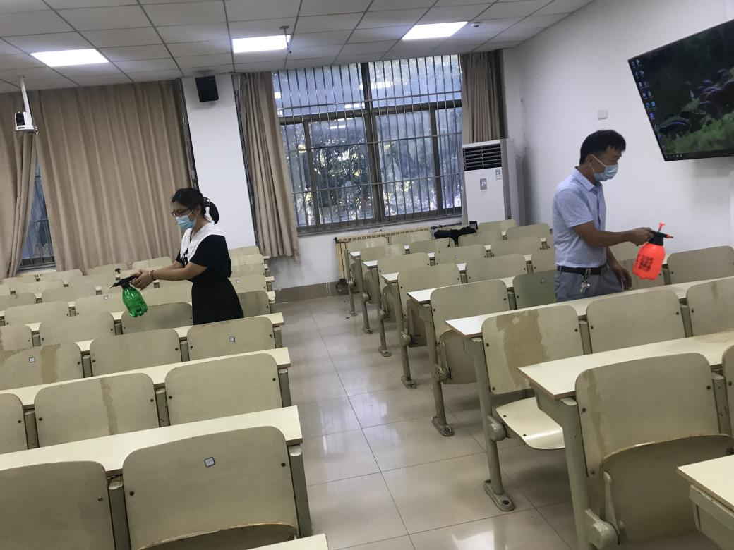 本次演练内容为学生上课演练:组织学生扫码按安全距离有序进入教室、单人单桌间隔就座,学生自感体温异常报告,授课教师立即上报疫情防控领导小组,迅速启动应急处置流程,对该名学生所在班级、途经走廊楼梯和临时隔离室进行全面彻底消杀。