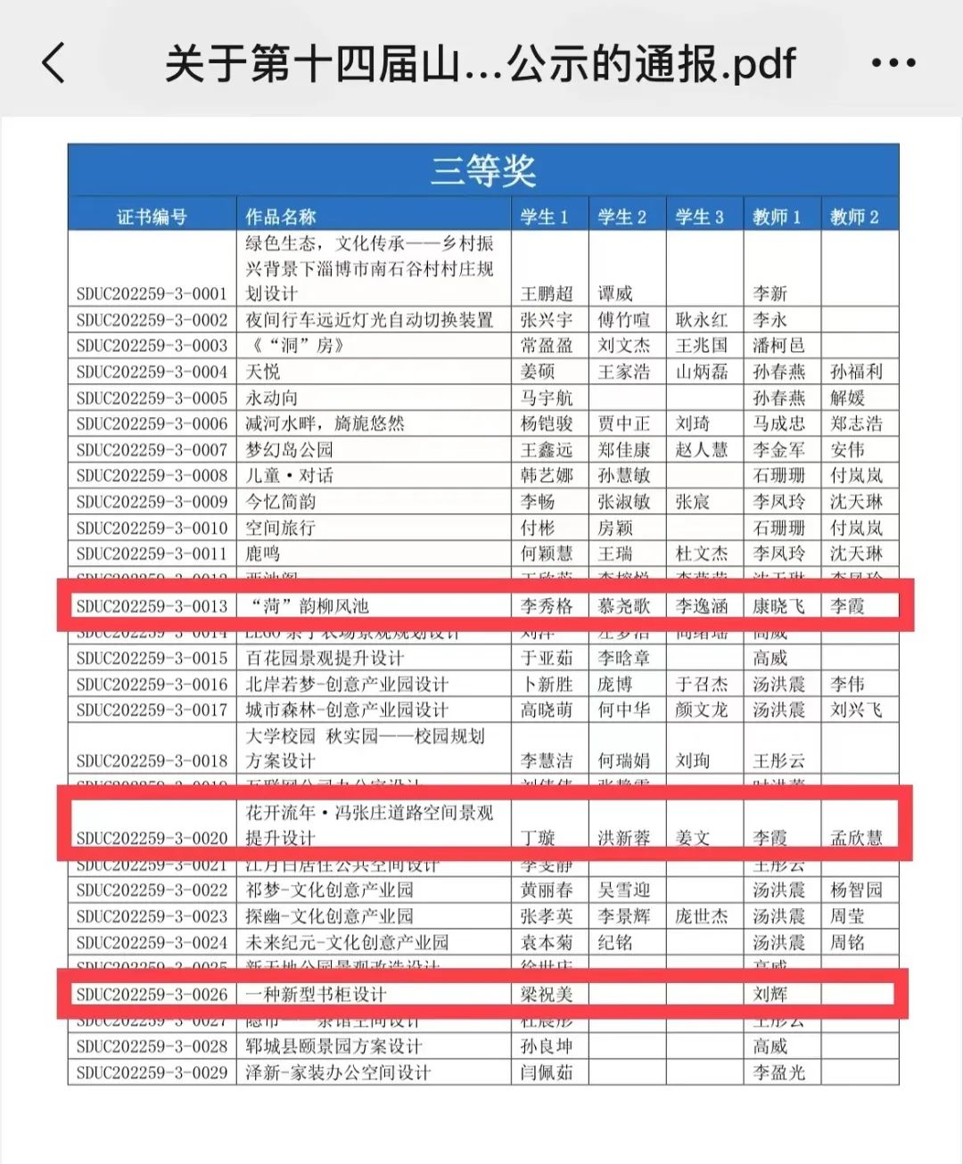 山东省第十四届大学生科技节——“赛冠杯”第三届山东省大学生环境艺术创新创意设计大赛,填补了省内无专业环艺大赛的空白,对弘扬科学精神,增强创新意识,强化技能培养,提高学生综合素质具有非常重要的作用。大赛为高校师生搭建了一个专业性、包容性的赛事平台,培养了高校学生的创新意识、团队精神和综合创造力,促进了大学生创新创业和人才培养质量提升。大赛以来,伟德victor1946高度重视、师生热切关注,参赛团队积极参与,涌现出了一批优秀团队和项目作品,为取得优异成绩奠定了坚实的基础。李霞老师、康晓飞老师指导苏钰、顾育瑄等学生的《棠影春风·居民社区公共空间景观设计》和刘辉老师指导刘耀晗参赛的《景湖公园景观规划设计》获得省级二等奖。康晓飞老师、李霞老师指导李秀格、慕尧歌、李逸等学生参赛的《“菏”韵柳风池》,李霞老师、孟欣慧老师指导丁璇、洪新蓉、姜文等学生参赛的《花开流年·冯张庄道路空间景观提升设计》,刘辉老师指导的梁祝美参赛的《一种新型书柜设计》等三个项目获得省级三等奖。张晓芹老师指导邓凡、迟飞宾等学生参赛的《复原•融元——四时本草生态康》,康晓飞老师、刘玉梅老师指导孙晓婷、肖吴毓懿、陈淑晨等学生参赛的《高山溪云》,刘辉老师指导原源、张馨莹等学生参赛的《人鸢共乐》,康晓飞老师、李秀伟老师指导王双、孙琪、刘昊瑜等学生参赛的《一抹绿——苔藓生态瓶》,刘辉老师指导张佳佳参赛的《月与人生》等项目获得省级优秀奖。