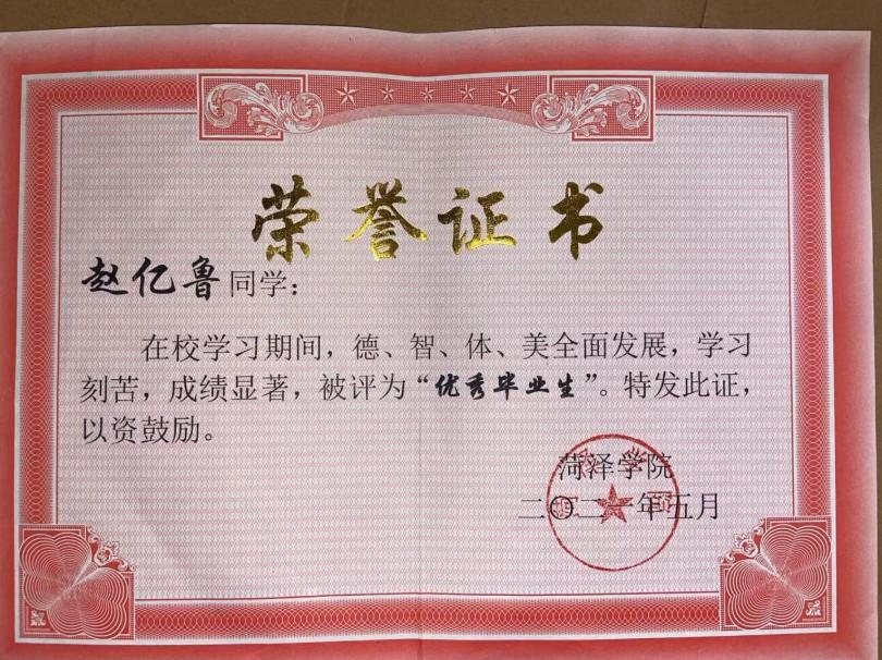 2021年6月荣获省级优秀毕业生