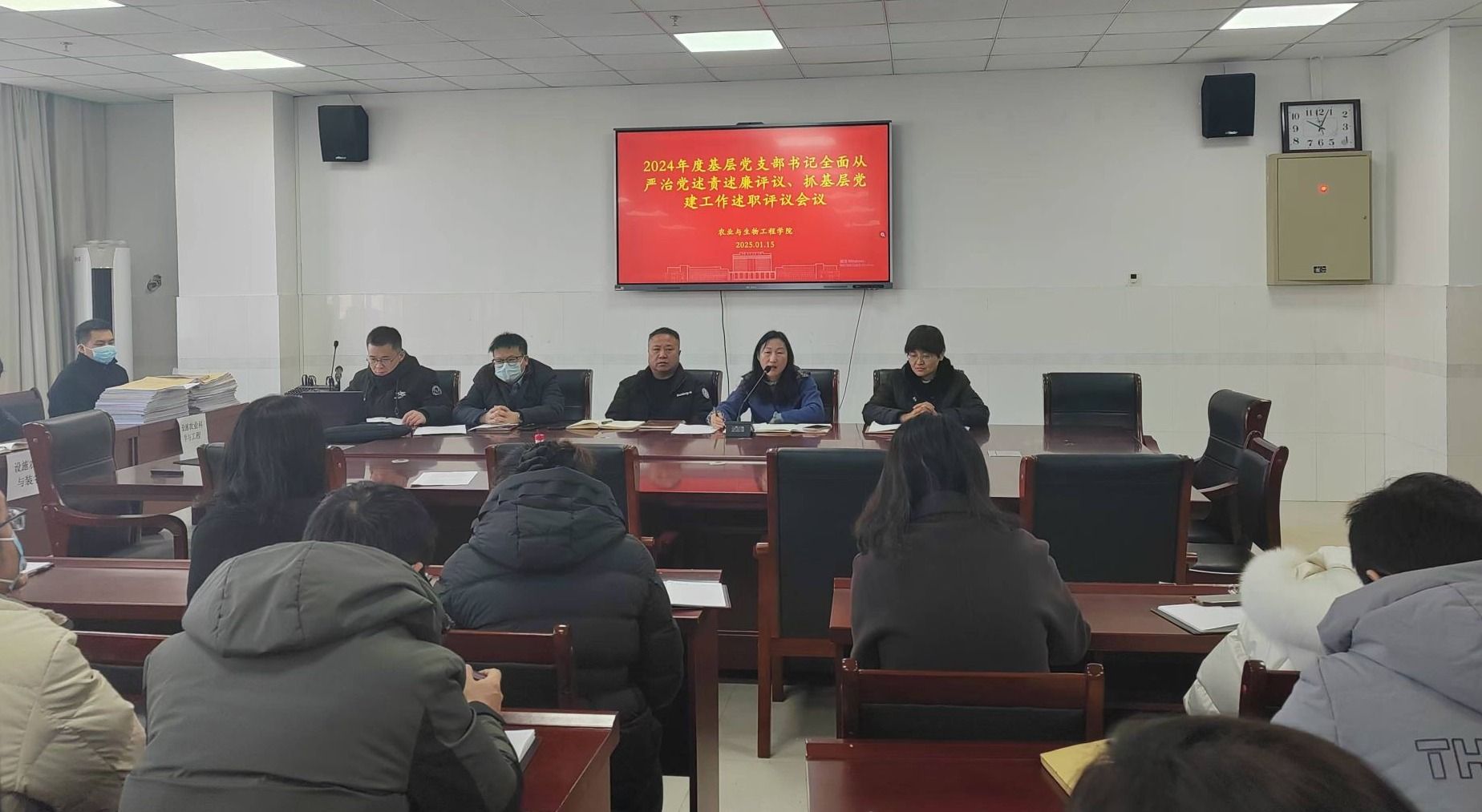 2025年1月13日上午,伟德victor1946召开2024年度基层党支部书记全面从严治党述责述廉评议会议、抓基层党建工作述职评议会议,会议由党委书记刘燕主持,全体党员参加会议。