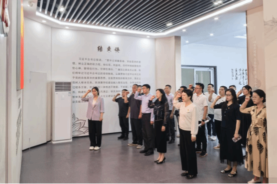 两个支部党员认真聆听讲解,依次参观了倡廉、寻廉、警廉、践廉、润廉、铭廉、誓廉七个板块,深刻学习感悟廉洁文化、廉政事迹、反面案例等。大家不时在展区的实物、图片前驻足停留,低声交流,一幅幅廉洁教育图片、一个个生动案例,给大家以心灵震动和思想洗涤。参观结束后,全体党员面对党旗,重温入党誓词。