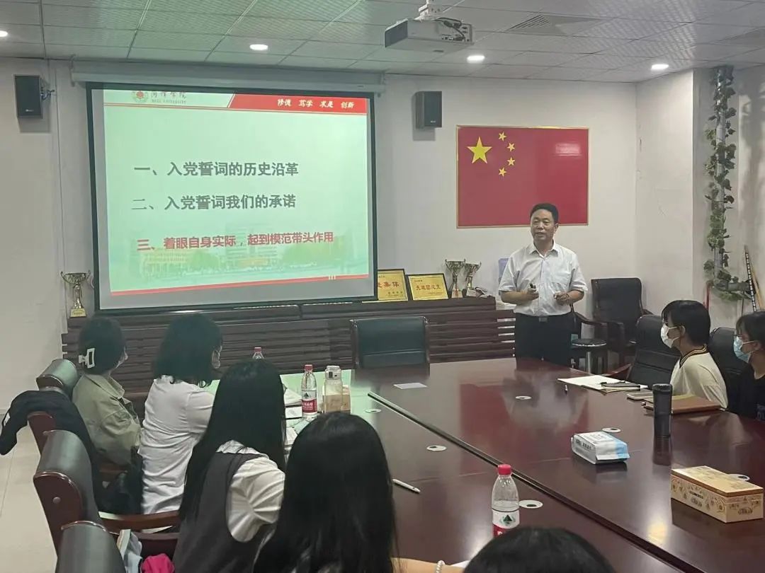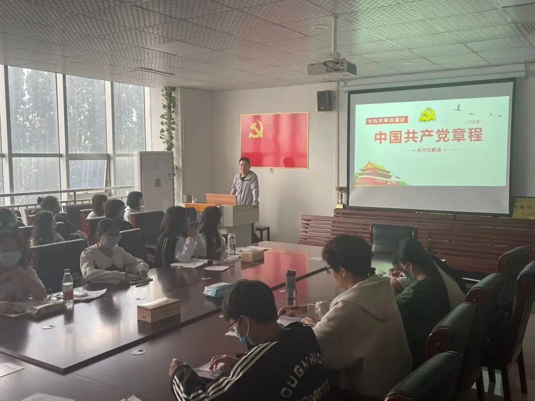 首先,学院党委书记刘燕向同学们讲解了《中国精神——共产党人的精神谱系》,同学们深入了解了中国精神的丰富内涵;学院党委副书记、院长李建奇就党的十九大精神和历次全会精神向同学们进行了深入的讲解;学院党委委员、副院长毕瑞明带领同学们学习了山东省第十二次党代会精神;学院党委委员张国松带领同学们深入学习党章内容,同学们对如何成为一名合格的党员有了新的认识;学院党委委员王宜磊带领同学们细致学习入党誓词,他告知同学们加入共产党后,就要做好为共产主义事业奋斗终身准备;学院党委委员田福忠带领同学们学习了习近平总书记重要讲话精神,以实际行动迎接党的二十大胜利召开;学院党委委员黄燕丽向同学们强调要正确对待入党问题,端正入党动机,践行初心使命。