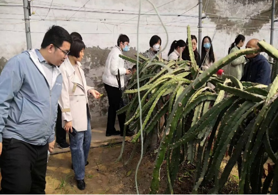 在勇冠农业,企业负责人吴勇详细介绍了企业的发展历程和目前开展的业务领域,并带领团队现场考察了日光温室火龙果、番茄、豇豆和南瓜生产。团队成员就火龙果的植株调整和授粉技术、番茄的肥水管理和病虫害防治、豇豆套种技术和贝贝南瓜的田间管理和病虫害防治等方面与负责人进行了详细交流。
