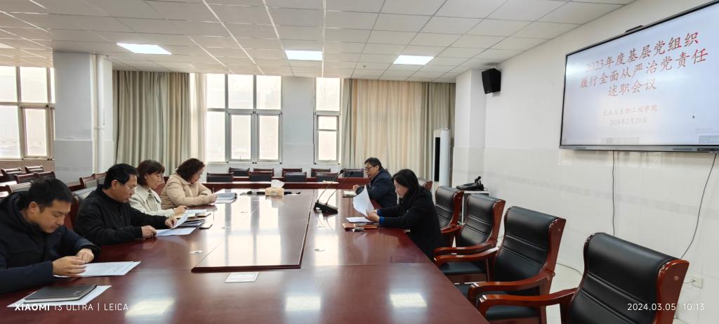 2月29日,伟德victor1946在综合实验楼W222会议室召开2023年度基层党组织抓基层党建工作、履行全面从严治党主体责任述职会议。院党委书记刘燕主持会议,学院党委副书记李战国、各支部书记、支部委员参加会议。