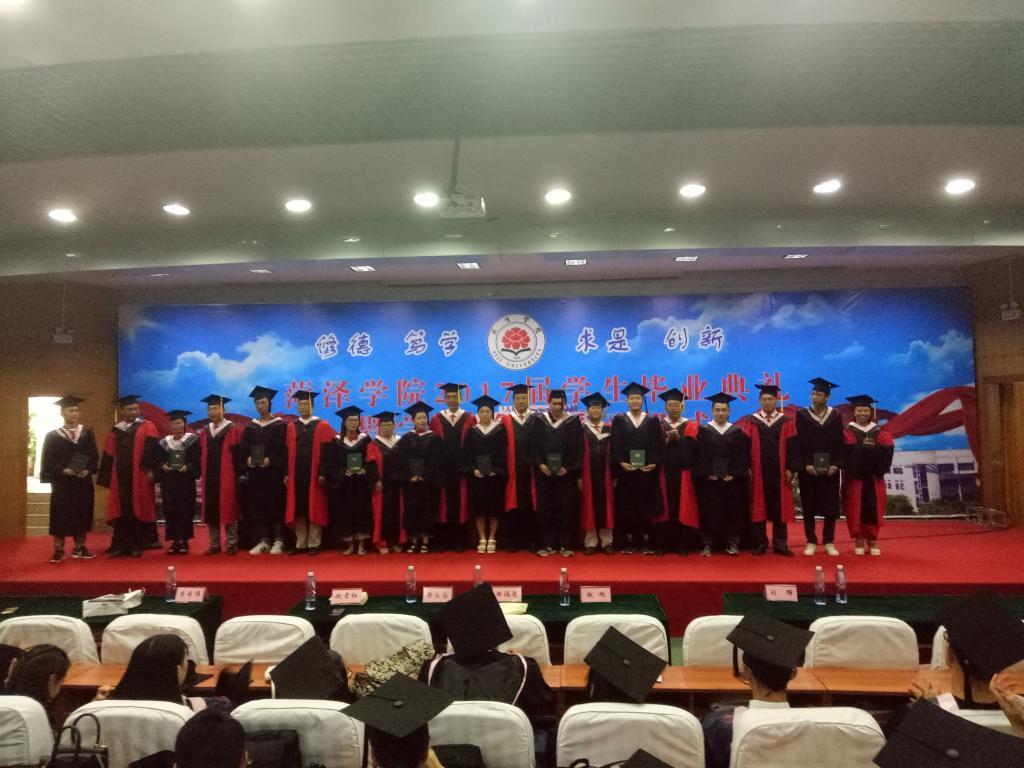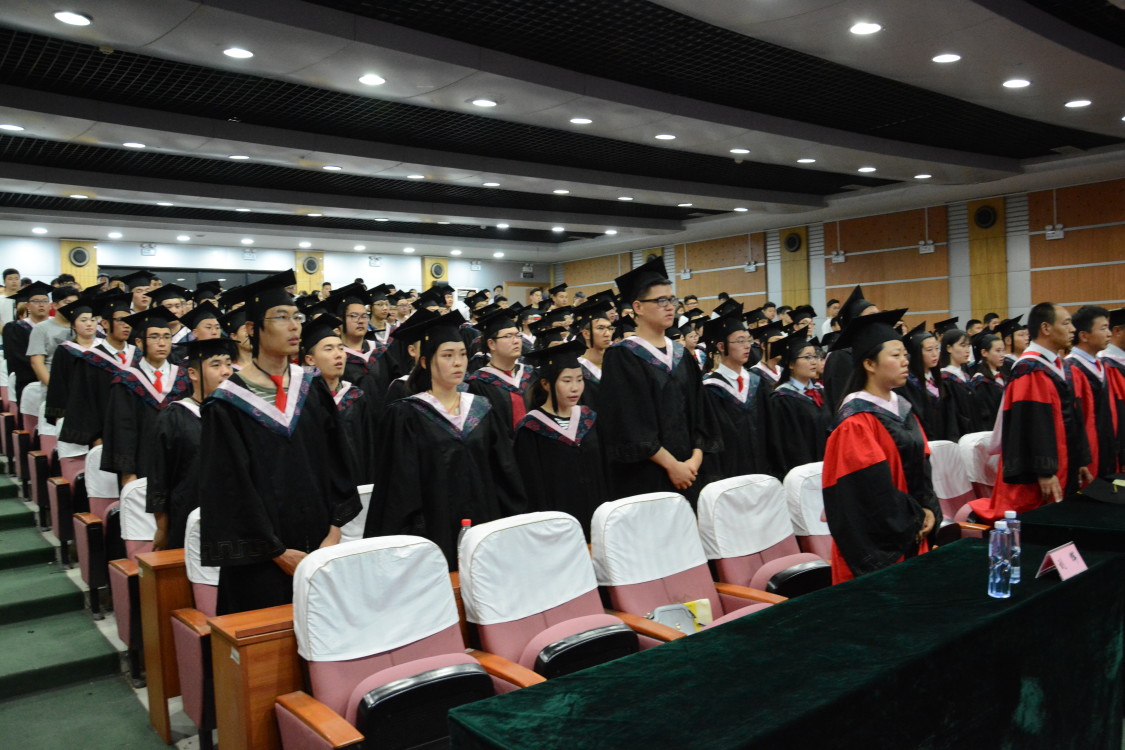 伴随着响亮的义勇军进行曲,毕业典礼正式开始。毕业典礼由李书记主持。副主任王娟宣读了2017届校级优秀毕业生、省级优秀毕业生表彰决定书,接着依次为本届毕业生进行学士学位授予及毕业证书颁发。之后毕业生代表刘昌龙同学、在校生代表张金芝同学及教师代表高威依次上台作了热情洋溢的发言。随后党总支书记王广峰代表学校向圆满完成学业的300多名毕业生表示祝贺,同时他语重心长地向全体毕业生提出了几点殷切的希望:一是希望每位毕业生用平常心对待人生,一切从小事做起,先做自己能做的,再做自己想做的;二是希望每位毕业生学会适应环境、适应社会;三是希望每位毕业生认真规划自己的人生,要有自己的人生目标;四是希望每位毕业生要有信心。最后,他还希望同学们牢记校训,常回家看看,继续关心和支持母校的发展。系主任周天华在讲话中补充到:即将走出校门、迈向社会的同学们正处在一个大发展大变革的时代,无论是继续深造还是创业就业,同学们都应倍加珍惜、奋力前行。最后,李书记做了总结发言,代表所有教职工祝愿同学们一路顺利、事业有成、平安幸福!