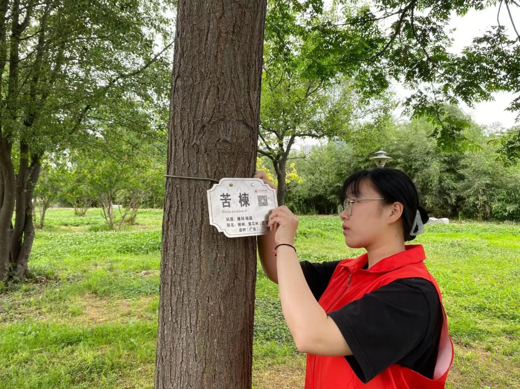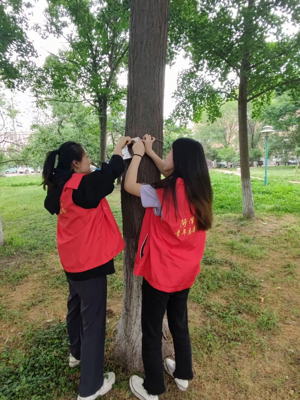 学校后勤处、团委和我院共同精心制作了树牌,每一个树牌上都标注有树木的学名、拉丁名、科属、别名,并附有二维码以便详细了解该树种。学生党员们拿到树牌与工具后,分别在校园中辨认树木,并为其树牌通过此次活动的开展,学生党员们利用课余时间将志愿服务与专业知识相结合,志愿服务的同时夯实了专业知识