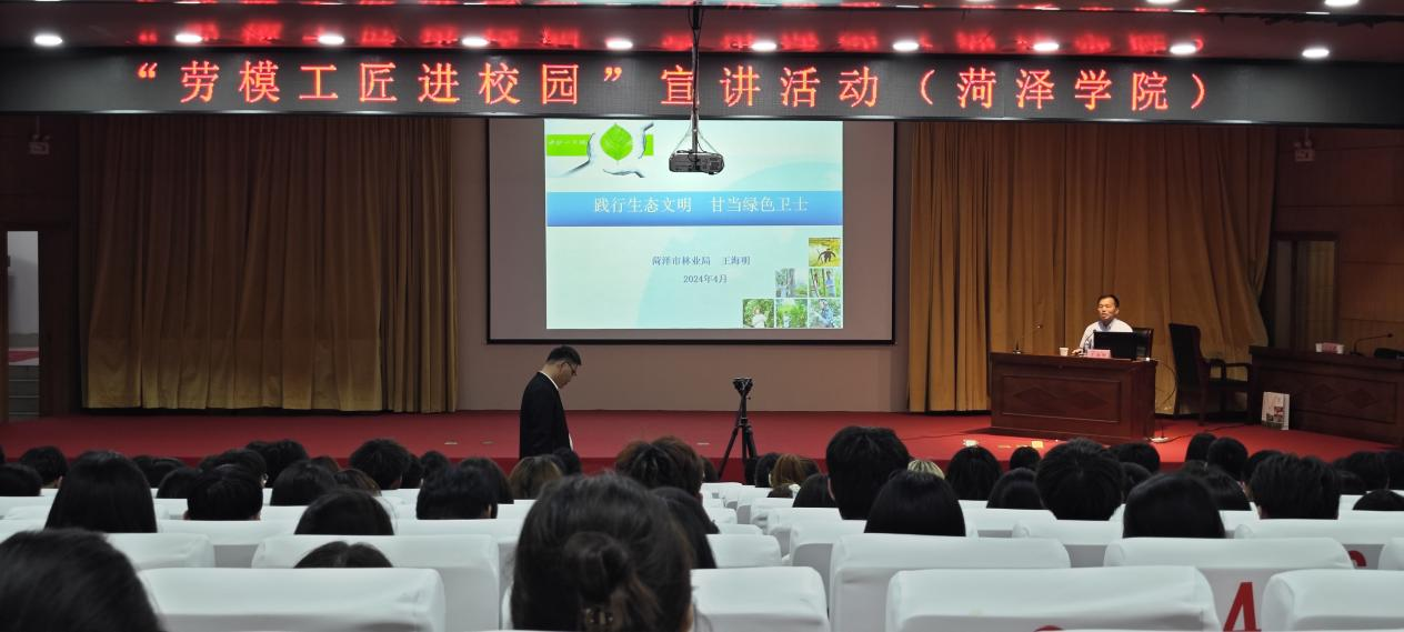 为进一步激发广大师生的爱国情怀和劳动精神,引领师生在新时代征程中凝心聚力、砥砺前行,4月24日,由菏泽市总工会主办,bevictor伟德国际1946工会和伟德victor1946承办的“中国梦·劳动美——凝心铸魂跟党走,团结奋斗新征程”劳模工匠进校园宣讲活动在bevictor伟德国际1946图书馆报告厅隆重举行。此次宣讲嘉宾是菏泽市林业局首席专家、二级研究员王海明,伟德victor1946部分师生代表参与宣讲活动。