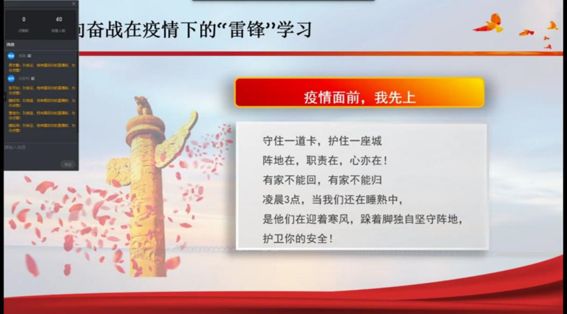 为进一步弘扬“奉献、友爱、互助、进步”的志愿服务精神,大力培育志愿服务文化,学习雷锋精神,同时做好新型冠状病毒感染肺炎疫情的防控工作,我院分团委开展了“深入抗击疫情,践行雷锋精神”为主题的网上团课。