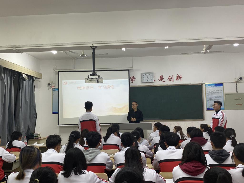 在班会上各班传达学习了党的十九届五中全会公报、习近平总书记重要讲话精神以及中共中央关于制定国民经济和社会发展第十四个五年规划和二〇三五年远景目标的建议。并指出,在以习近平同志为核心的党中央坚强领导下,“十三五”我国社会主义事业各方面建设取得了突出成就,全面建成小康社会胜利在望。站在“两个一百年”奋斗目标的历史交汇点上,全会重点研究“十四五”规划问题,审议通过的《建议》是夺取全面建设社会主义现代化国家新胜利的纲领性文件,为实现第二个百年奋斗目标、实现中华民族伟大复兴的中国梦奠定了重要基础。班会前同学们通过集中观看直播、个人自主观看视频等形式收看了十九届五中全会精神中央宣讲团报告会。在班会上结合个人学习实际,通过多种形式发表学习感言,分享心得体会。大家纷纷表示,在以习近平同志为核心的党中央坚强领导下,我国各项事业迈上新台阶,尤其是在抗击新冠肺炎疫情期间,中国共产党的领导和我国社会主义制度的优势进一步彰显,取得了统筹疫情防控和经济社会发展的重大战略成果。我们要增强“四个意识”,坚定“四个自信”,坚决做到“两个维护”,结合自身实际,把思想和行动统一到中央的重大决策部署上来,要把力量凝聚到为实现“十四五”规划的奋斗中去。青年正当时,建功新时代。广大青年必当更加紧密团结在以习近平同志为核心的党中央周围,珍惜成绩、坚定信心,以坚韧不拔的毅力、坚持不懈的干劲为夺取全面建设社会主义现代化国家新胜利贡献青春力量!