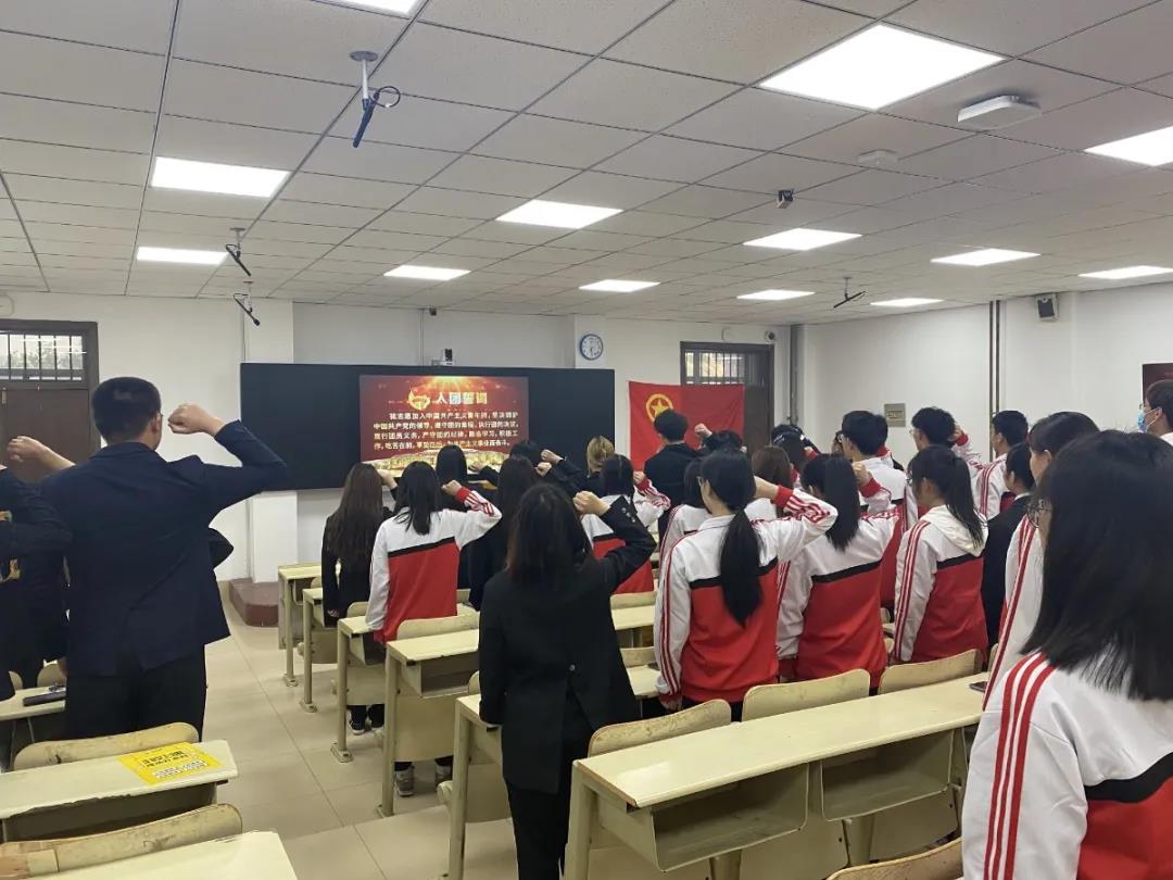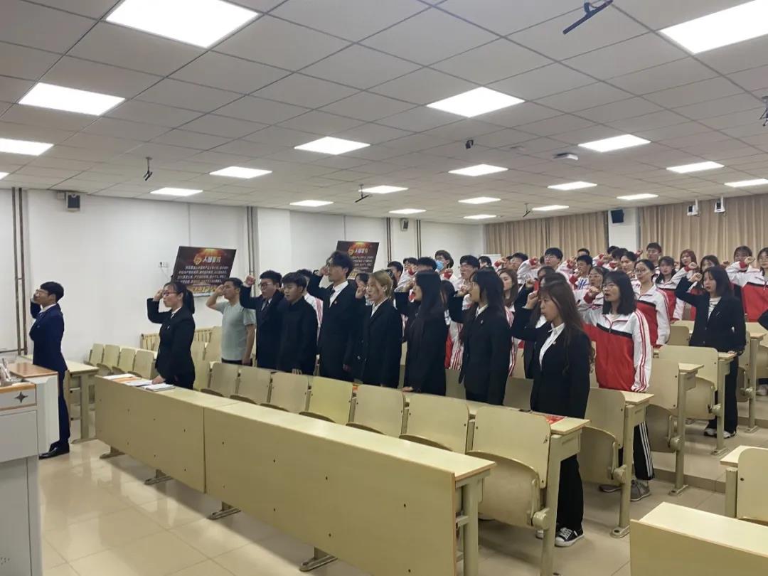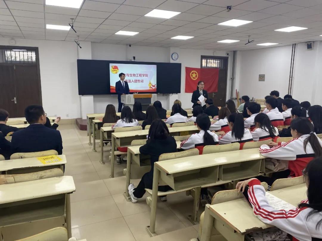 本次活动由学生联合会主席朱吉立主持,首先,由朱吉立介绍本次主题团日活动召开的重要意义。接着,在朱吉立的带领下,全体团员面向团旗,右手握拳,举过右肩,庄严宣读入团誓词。铿锵有力的入团誓词,激励着青年团员不忘初心、牢记使命担当。