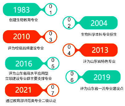 生物科学专业由1983年开始招生的生物教育专业发展而来。经过30多年的建设和发展,现已成为省内知名中小学生物学教师培养和生物科学精英人才输送基地。2019年被评为山东省一流专业建设点,2021年通过国家教育部师范类专业二级认证。