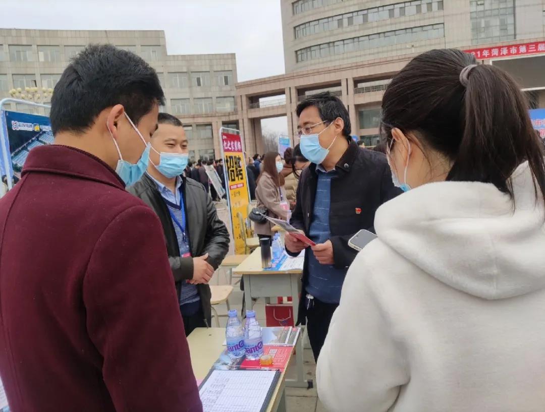 3月19日上午,由中共菏泽市委、菏泽市人民政府主办,bevictor伟德国际1946、中共菏泽市委组织部、菏泽市人力资源和社会保障局承办的“2021年菏泽市第三届人才大集”活动在校综合楼前广场成功举办。