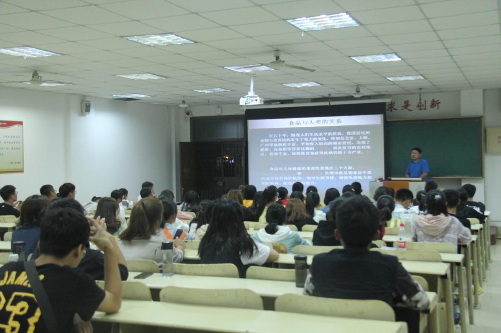 主讲老师为王波老师。王波老师首先介绍了这两大专业的背景。他强调,食品科学与工程专业与农产品质量加工与检测专业是“朝阳专业”,非常有前景。他说,食品行业关系到国计民生,是国民经济的支柱产业,也有利于解决“三农”问题。在介绍食品工业现状的同时,他也给同学们提出了国内食品工业的不足与差距——食品工业结构不合理,农产品加工程度、商品化程度低综合利用差等,并就“非洲猪瘟”向大家说明了国内不完善的食品安全体系。他指出,这两个专业学习的任务就是“提高人民的健康水平,保证群众的食品安全”。接着,王波老师就专业的就业形势进行分析——主要就业岗位、毕业生去向、行业分布、工作地点以及平均月薪。王波老师最后强调,作为牡丹学院的学子,应该在思想、心理、学习上都做好积极的准备。大学很多的时间可以自由支配,应与自己的专业老师多沟通,学扎实基础,找到自己的定位与爱好,对未来会有很大的帮助。
