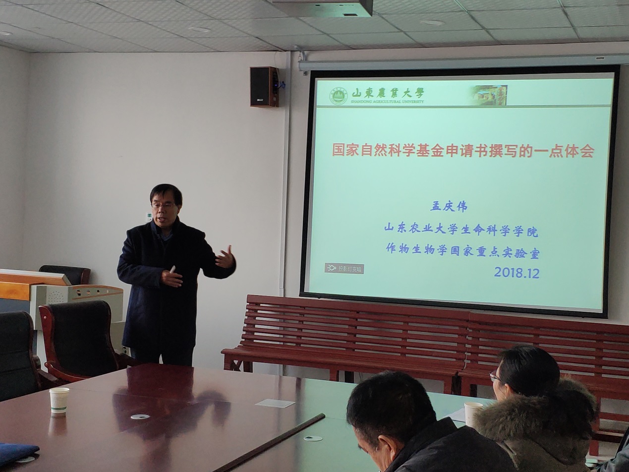 12月14日,山东农业大学孟庆伟教授应伟德victor1946邀请,来我校作了题为“国家自然科学基金申请书撰写的体会”的学术报告。