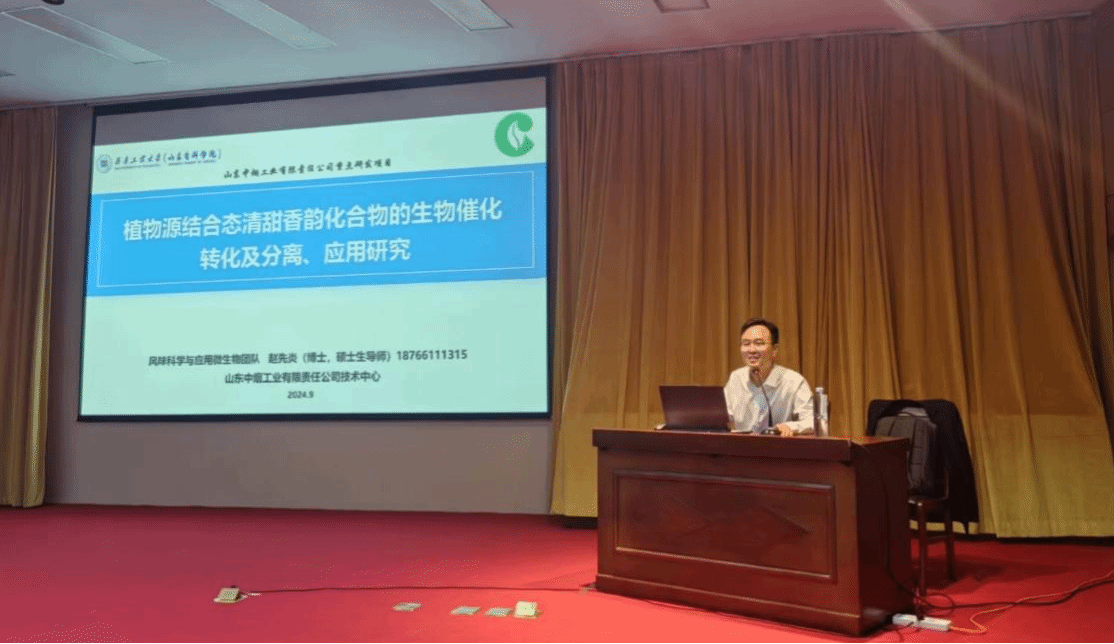 伟德victor1946于2024年9月24日成功举办了一场高水平的学术报告会。本次报告特邀齐鲁工业大学生物工程学院硕士生导师---我校2008级优秀校友赵先炎博士为主讲嘉宾,围绕“植物源结合态清甜香韵化合物的生物催化转化及分离、应用研究”的前沿课题,为在座的师生带来了一场精彩纷呈的学术盛宴。