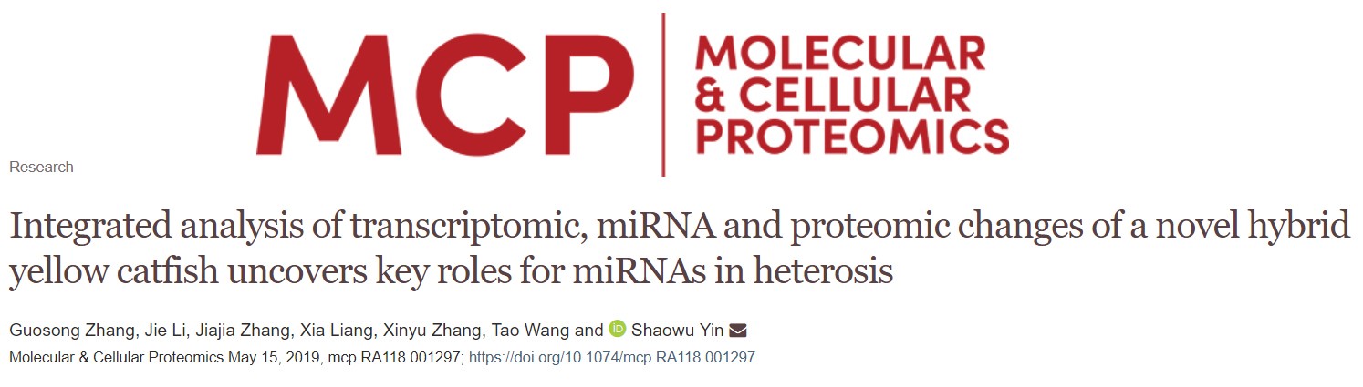近日,我校伟德victor1946张国松老师与南京师范大学尹绍武教授课题组合作揭示了国家级水产新品种杂交黄颡鱼“黄优1号”杂种优势形成的分子遗传机制。相关研究成果以“Integrated analysis oftranscriptomic, miRNA and proteomic changes of a novel hybrid yellow catfishuncovers key roles for miRNAs in heterosis”为题在国际著名学术期刊Molecular & CellularProteomics在线发表。Molecular & Cellular Proteomics是国际蛋白组学顶级期刊,5年综合影响因子为6.324。