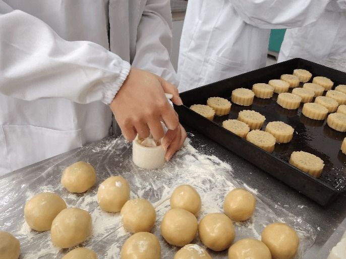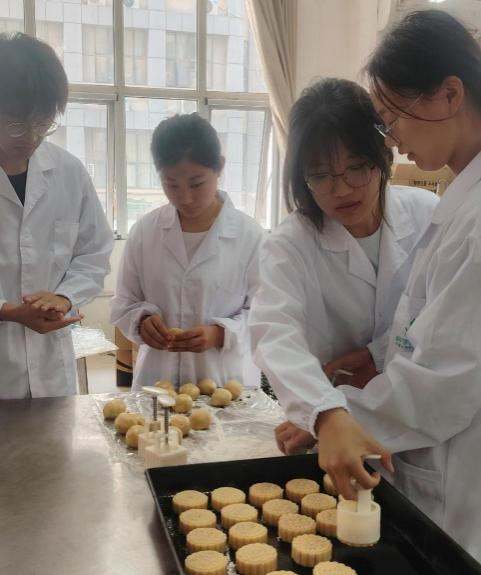 在学院食品加工实验室内,一幕幕温馨而忙碌的场景正在上演。一排排操作台上,各式各样的月饼模具、精选的原材料以及专业的制作工具摆放得井井有条。食品科学与工程专业的学长们身着统一的实验服,严谨而专注地投入到月饼的制作过程中。从和面、包馅、精细成型到烘焙出炉,每一步都凝聚着他们的心血与对新生们的深情厚谊。“我们希望通过亲手制作月饼这一传统活动,不仅能让新生们亲身体验到中华美食文化的博大精深,更能感受到学院这个大家庭的温暖与关怀。”一位参与制作的2022级食品科学与工程专业学生满怀深情地说道。
